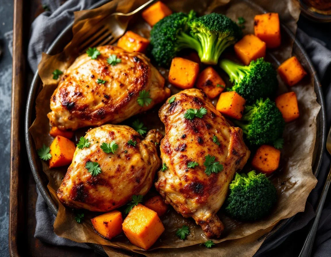 Toss sweet potatoes with oil + seasonings. Spread on pan.